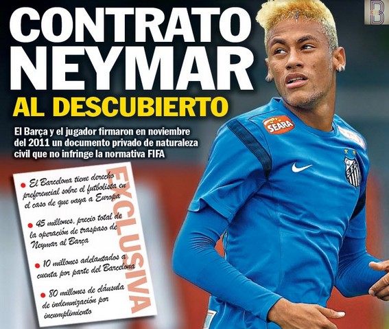 Báo chí Barcelona liên tục những ngày qua đưa tin liên quan đến tương lai của ngôi sao Neymar. Theo tiết lộ độc quyền của nhật báo SPORT số ra ngày 25/3, giữa FC Barcelona và ngôi sao Neymar của Santos đã ký với nhau từ lâu một bản hợp đồng cá nhân.