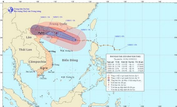 Hồi 13 giờ ngày 16/8, vị trí tâm bão ở vào khoảng 19,3 độ Vĩ Bắc; 115,8 độ Kinh Đông, cách quần đảo Hoàng Sa khoảng 480km về phía Đông Bắc.