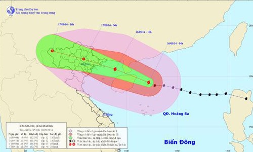Hồi 04 giờ ngày 16/9, vị trí tâm bão ở vào khoảng 19,4 độ vĩ Bắc; 112,2 độ kinh Đông, trên vùng biển phía Đông đảo Hải Nam (Trung Quốc), cách bờ biển Hải Phòng – Quảng Ninh khoảng 570km về phía Đông Đông Nam. Sức gió mạnh nhất ở vùng gần tâm bão mạnh cấp 12 - 13 (tức là từ 118 đến 149km/ giờ), giật cấp 15 - 16.