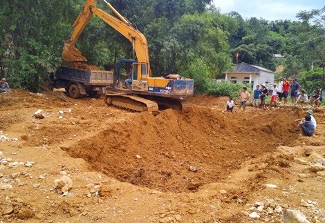 Máy móc được huy động để đào đất tìm vàng ở Tiến Sơn.