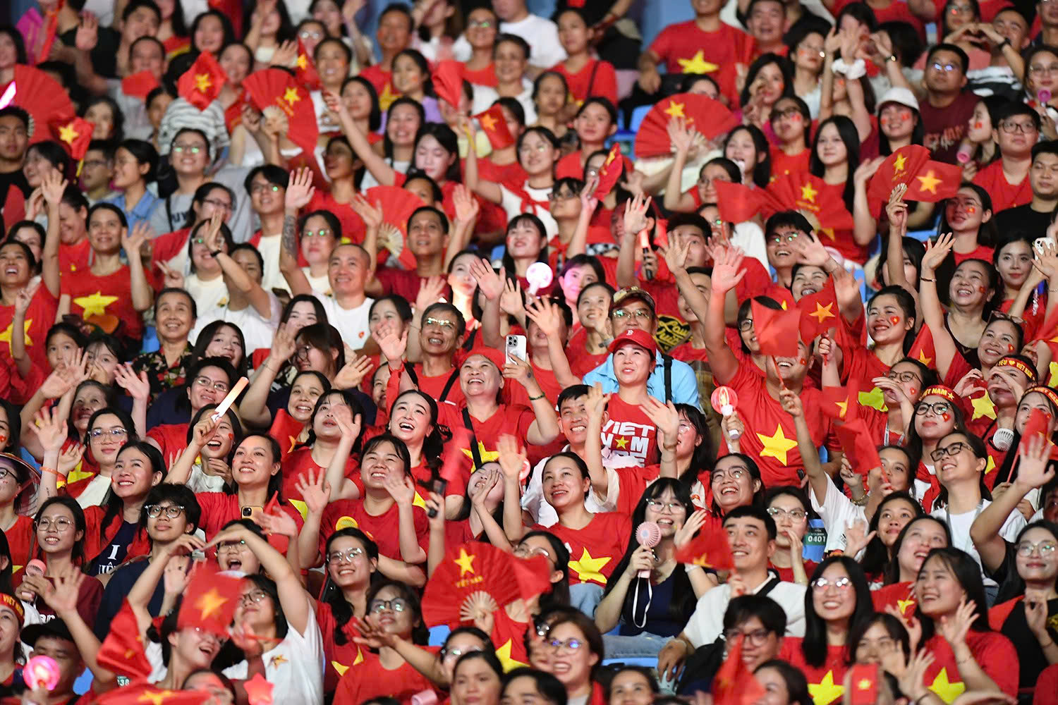 Đông đảo khán giả mặc áo cờ đỏ sao vàng cổ vũ cho chương trình