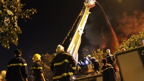 Các lực lượng chức năng tại hiện trường vụ cháy
