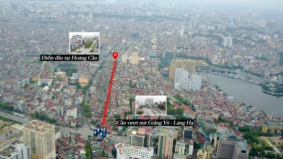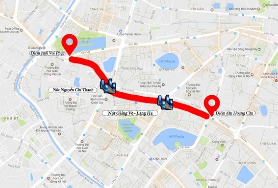 Tuyến đường sẽ xây dựng 2 cầu vượt qua nút giao Giảng Võ - Láng Hạ và nút giao Nguyễn Chí Thanh.