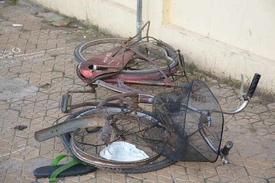 Tại hiện trường, xe máy nằm cách hiện trường vụ tai nạn ban đầu gần hơn 18m. Xe máy hư hỏng nặng, xe đạp văng trên vỉa hè, biến dạng, nhiều mảnh vỡ 2 xe văng tứ tung.