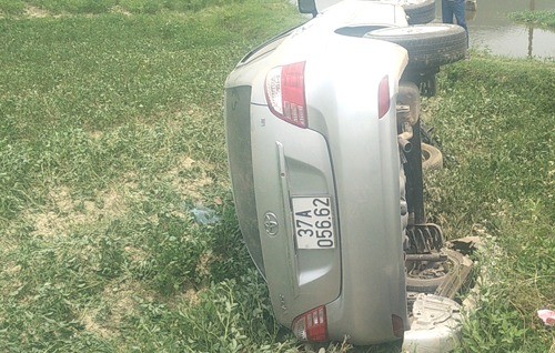 Sau cú va chạm, nam thanh niên điều khiển xe máy bị thương nặng, được người dân đưa đi cấp cứu trong tình trạng đa chấn thương. Chiếc ô tô cũng bị mất lái rồi lộn nhào xuống ruộng lạc ven đường. Tại hiện trường hai phương tiện đã bị biến dạng sau va chạm.
