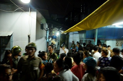 Vào giữ khuya nhưng vẫn có hàng trăm người dân tập trung tại khu vực hiện trường theo dõi vụ việc.