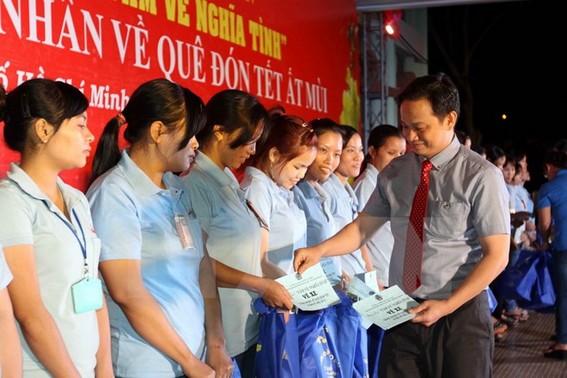 Theo Liên đoàn Lao động Thành phố, trong dịp Tết Nguyên đán năm nay, các cấp công đoàn phấn đấu thực hiện chỉ tiêu trao tặng 30.000 vé xe cho công nhân (Tết Giáp Ngọ 2014 tổ chức công đoàn thành phố đã trao tặng 28.371 vé).