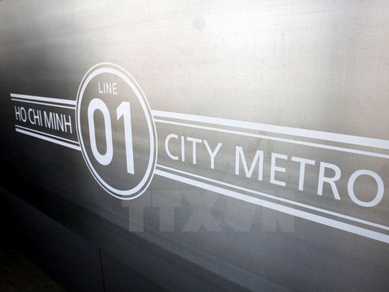Logo đầu máy toa xe tuyến Metro số 1. (Ảnh: Hoàng Hải/TTXVN)