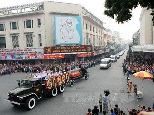 Di chuyển linh cữu Đại tướng Võ Nguyên Giáp trên đường phố Hà Nội (Nguồn: TTXVN)