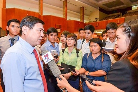Ông Nguyễn Thành Phong, Chủ tịch UBND TP. Hồ Chí Minh trao đổi với báo giới