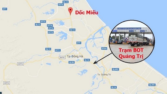 Theo tìm hiểu của chúng tôi, trạm BOT Quảng Trị tại Km 763+800 QL1A thuộc địa bàn bàn xã Triệu Giang (Triệu Phong) giữa TP Đông Hà với 3 huyện, thị xã phía nam gồm Triệu Phong, Hải Lăng và TX Quảng Trị.