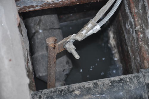 Hệ thống tiếp đất chống sét được nối xuống cống nước thải ngay trước cửa nhà dân
