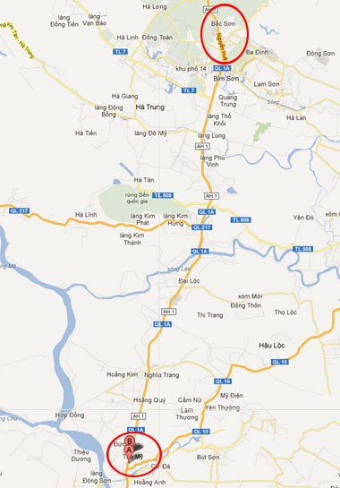 Trạm thu phí Tào Xuyên chuyển lên thị xã Bỉm Sơn. Ảnh Google Maps