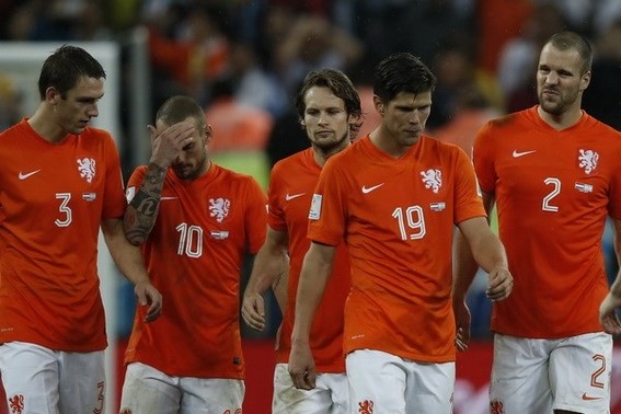 Nỗi buồn của các cầu thủ đội tuyển Hà Lan sau thất bại trước đội tuyển Argentina trong trận bán kết World Cup 2014. (Nguồn: AFP/TTXVN)