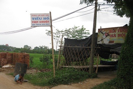 Những biển hiệu quảng cáo về thịt chuột dễ thấy ở xã Canh Nậu.
