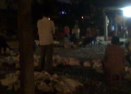Lang thang quanh chợ, chúng tôi thấy, trước mỗi cửa hàng là một đống chai, lọ vứt ngổn ngang trên mặt đất. Qua tìm hiểu, được biết, đây là dụng cụ các tiểu thương dùng để "nhồi" gà, vịt nặng hơn. Thông thường, do không đủ thời gian, nên những chủ hàng lớn sẽ ít "nhồi" hơn so với các tiểu thương. Trong khi đó, những lái buôn nhỏ lại rất chăm chỉ với công việc của mình. Dưới ánh sáng mờ của đèn chợ, họ ngồi sát vào nhau để "nhồi" cho gia cầm bằng đủ thứ.