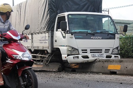 Khoảng 6h20 ngày 17/5, một chiếc xe tải do tránh xe khách đã leo lên cán nát hàng chục mét dải phân cách trên quốc lộ 1A (P.Hiệp Bình Phước, Q.Thủ Đức, TP.HCM) khiến người đi đường hoảng loạn, giao thông ùn tắc nghiêm trọng.
