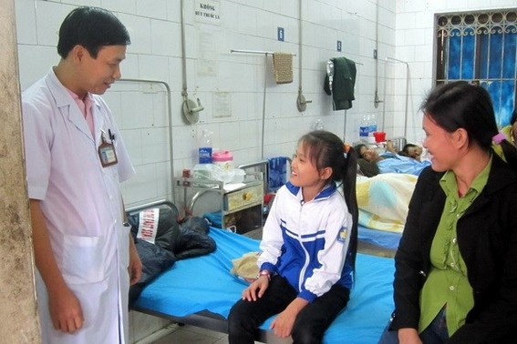 Đến chiều, 3 em được xuất viện, riêng em Nguyễn Thị Hoài Thu (lớp 3C) vẫn còn sốt nên các bác sỹ vẫn tiếp tục theo dõi và cho truyền dung dịch muối.