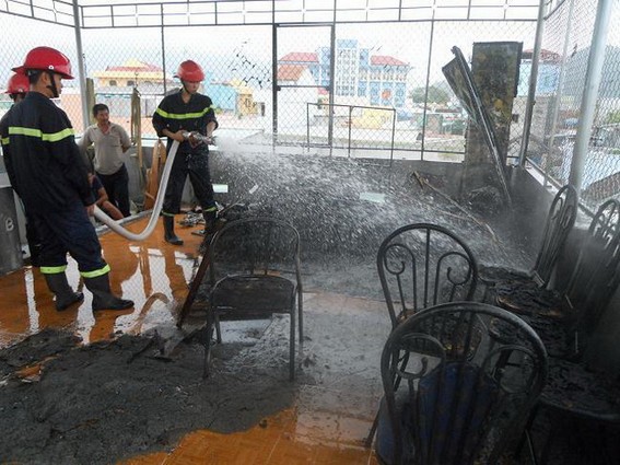 Khoảng 15 phút sau, hai xe chữa cháy của Phòng cảnh sát phòng cháy chữa cháy công an tỉnh có mặt tại hiện trường.