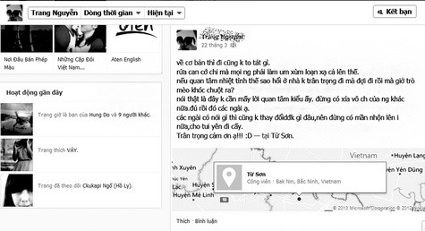 Vụ cô HS giỏi, ngoan hiền “trộm vàng của bố mẹ ,bỏ nhà theo bạn trai” làm xôn xao dư luận huyện Vũ Quang nhiều ngày nay. Cứ ngỡ Trang sẽ hối hận quay về nhà xin bố mẹ tha lỗi nào ngờ trên trang mạng xã hội facebook cá nhân của mình, cô HS này lại viết: “Về cơ bản thì chuyện bỏ đi không có gì to tát. Cớ chi mà mọi người phải làm um xùm, loạn xạ cả lên thế. Nếu quan tâm nhiệt tình thế sao hồi ở nhà không trân trọng đi mà đợi đi rồi mà giở trò mèo khóc chuột ra. Nói thật là đây không cần mấy lời quan tâm kiểu ấy, đừng có xí vô chuyện của người khác, đủ rồi các ngài ạ, các ngài có nói gì thì cũng không thay đổi được gì đâu, nên đừng có mần (làm) nhộn lên nữa cho tui yên ”. Trang còn viết : “Cơ bản là em không muốn về, bao giờ muốn về em tự tìm đường về, mà đi rồi em về khó lắm”.