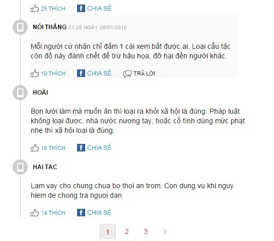 Bình luận của nhiều độc giả trên một tờ báo điện tử thể hiện sự đồng cảm với hành động đánh chết trộm chó tại Quảng Ninh