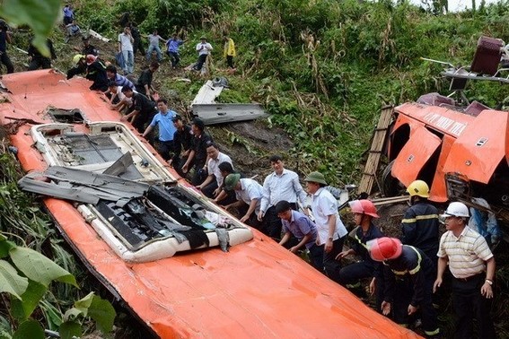 Hiện trường vụ tai nạn thảm khốc tại Lào Cai vào ngày 1/9 vừa qua. (Ảnh: PV/Vietnam+)