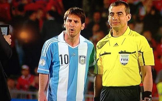 Trong loạt trận vòng loại World Cup 2014 khu vực Nam Mỹ sáng 17/10, Argentina đã đánh bại Chile ngay trên sân khách với tỉ số 2-1. Lionel Messi lại nổ súng nhưng điểm nhấn của trận đấu lại đến từ hành vi kì lạ của vị trọng tài biên, Nicolas Yegros.