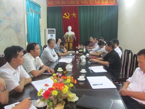 Buổi họp thông báo quyết định kỷ luật đối với trưởng công an xã và 4 đồng chí tham gia chơi bài tại trụ sở công an xã. Ảnh: Phan Chính