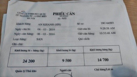 Trong lượng khi khách hàng cân ở ngoài là 9500Kg