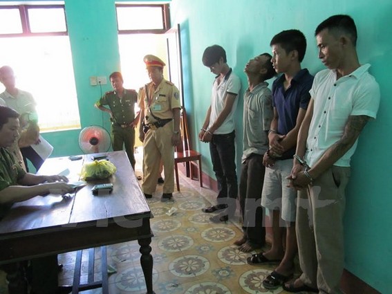 Các đối tượng bị bắt được đưa về cơ quan công an. (Ảnh: Nguyễn Đức Thọ/Vietnam+)