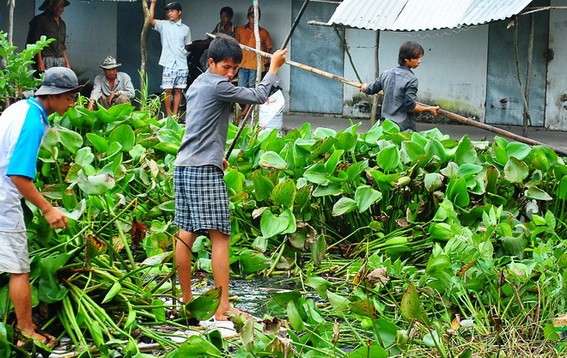 Người của Công ty Quốc Việt truy lùng cá sấu sổng chuồng sáng 19-10, thu hút đông đảo người xem - Ảnh: Đông Triều