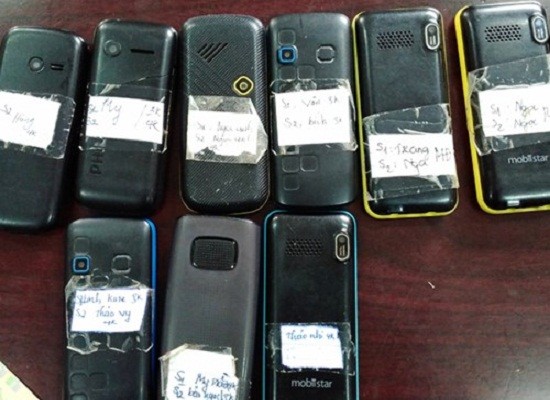 Số điện thoại bị thu giữ ghi tên gái bán dâm và số tiền bán dâm