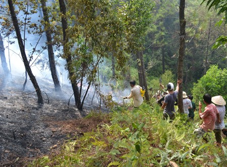 Gần 100 cán bộ kiểm lâm, công an, quân đội và người dân lập tức được huy động để dập tắt đám cháy nhưng đến 15 giờ 30 phút cùng ngày ngọn lửa mới được khống chế.