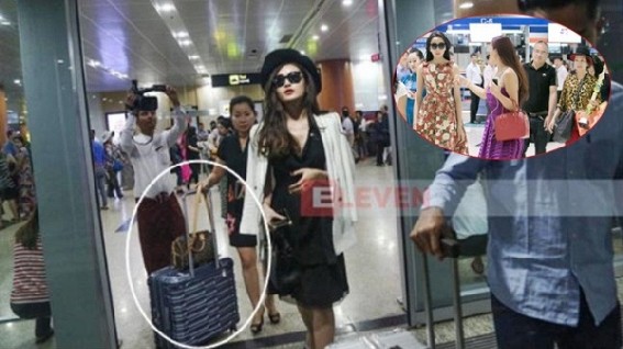 Trong một lần tới Myanmar, Á hậu Huyền My lại bị tố để mẹ xách đồ cho mình, còn bản thân lại “sang chảnh” xách túi hàng hiệu bước đi trước sự chào đón của người hâm mộ.