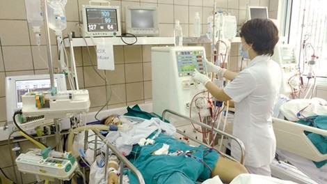 Điều trị bệnh nhân ngộ độc rượu ở Trung tâm Chống độc, Bệnh viện Bạch Mai. Ảnh: V.Thu