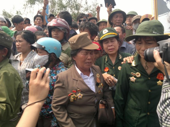 Những người nữ quân nhân không cầm được nước mắt khi Linh xa đi qua. Ảnh Trí Thức