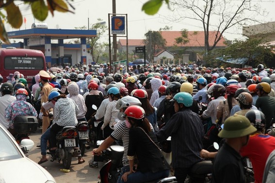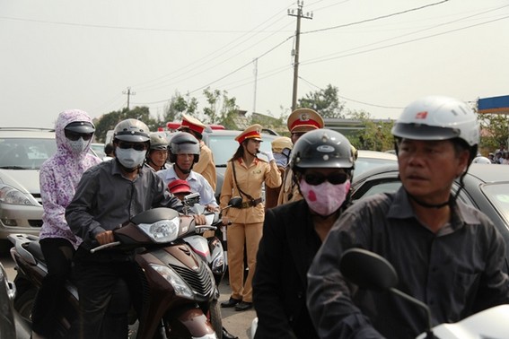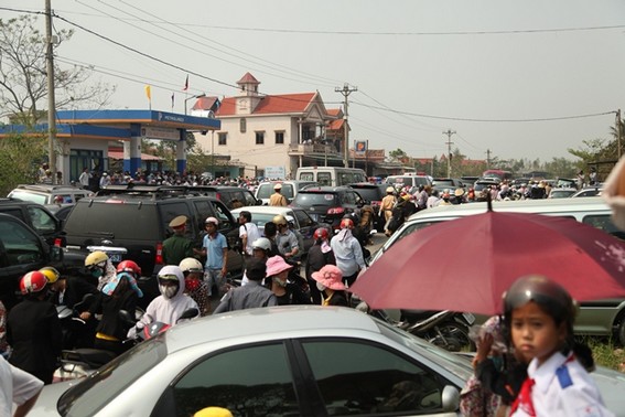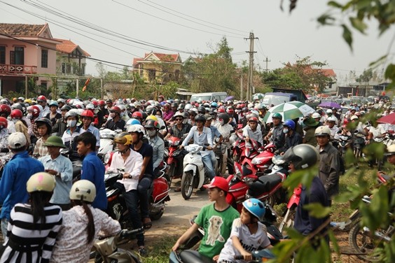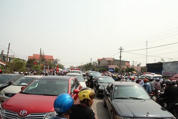 Mặc dù có lực lương thanh niên tình nguyện và an ninh dẹp đường, nhưng dân đổ ra quá đông, đường bị tắc khiến đoàn linh xa chỉ có thể di chuyển rất chậm.