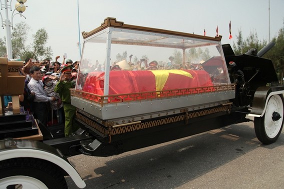 Theo cung đường đã định sẵn, Đoàn tang lễ sẽ theo hướng Quốc lộ về thẳng Vũng Chùa với tổng lộ trình khoảng 60 km. Trên đường đi có hàng nghìn người đứng dọc tuyến quốc lộ để nhìn tiễn biệt Đại tướng lần cuối. Họ hướng về đoàn linh xa trên tay cầm di ảnh của bác với ánh nhìn khắc khoải.