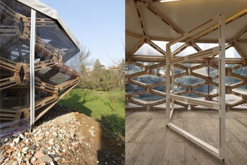 "Túp lều" được sử dụng như là một không gian công cộng, thiết kế với sự thông thoáng, nó nằm trong khu vườn của Biệt thự Romana, thuộc Viện Văn hóa Đức tại Florence, nước Ý. Vật liệu sử dụng trong thiết kế công trình là gỗ, quá trình lắp ráp chỉ mất 4 ngày.
