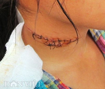 Thấy hành động quyết liệt của con gái, lúc này Hành mới như thoát khỏi cơn u mê, kêu la và hàng xóm đã kịp thời can thiệp, đưa H đi cấp cứu tại bệnh viện huyện. Vết thương của cháu phải khâu 12 mũi…