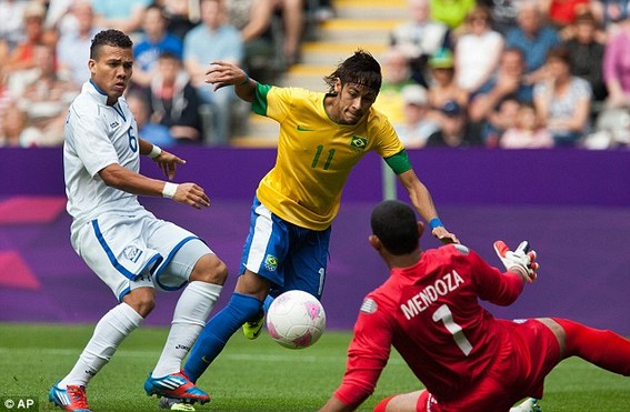 Như thường lệ, U23 Brazil đã tràn lên tấn công và tạo ra thế trận áp đảo ngay sau tiếng còi khai cuộc của trọng tài. Phút thứ 1, Oscar chuyền bóng cho Damiao băng lên đối mặt với thủ thành Mendoza. Tiếc là pha dứt điểm của cầu thủ này lại không thành công. Ít phút sau, Sandro chuyền bóng vào trong vòng cấm cho Neymar, song Mendoza đã kịp lao ra cản phá.