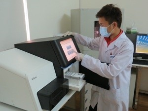 Nhân viên y tế sử dụng máy giải trình tự gene thế hệ mới nhất. (Ảnh: PV/Vietnam+)