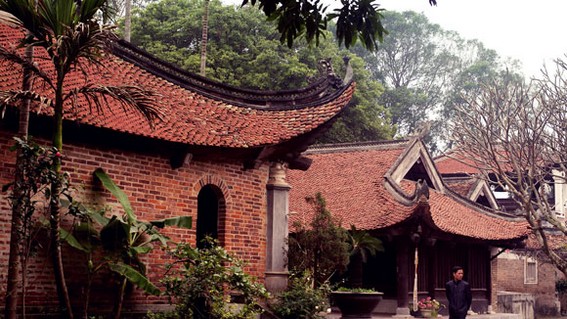 Mở đầu cho cụm công trình là cổng Tam quan, từ đây đi vào chùa chính, bạn phải bước 101 bước chậm rãi như để lại những hỉ-nộ-ái-ố đời Trần trước khi bước vào cõi Phật. Cả bốn khối kiến trúc trong chùa đều bằng gỗ, với những cột gỗ làm trụ đỡ đơn giản, nổi bật lên quần thể di sản gồm các kèo được trạm trổ công phu. Đặc biệt là quần thể tượng gồm hơn 100 bức lớn nhỏ cùng những hoành phi câu đối được sơn son thiếp vàng như càng làm tăng thêm vẻ linh nghiêm chốn thiền tự.