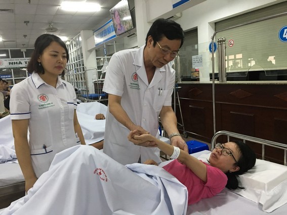 Với số lượng BN tăng đến chóng mặt, nên dù đã được tăng cường từ các khoa khác nhưng các y, bác sĩ hầu như không có lúc nào được nghỉ ngơi. Hết lấy máu rồi lại thăm khám, truyền dịch… họ không ngơi tay, và mỗi khi có một ca cấp cứu nặng, tất cả lại khẩn trương, dồn sức giành giật sự sống cho BN. Sự tận tâm của các y, bác sĩ khiến BN cảm động. BN Dương Ngọc Đức năm nay 81 tuổi, ở Hà Nội được các y, bác sĩ ở đây chăm sóc tận tình trong lúc phòng không có chỗ chen chân do quá tải, vì vậy ông bảo người nhà mình về hết để tạo không gian cho các y, bác sĩ làm việc.