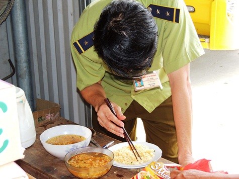 Sau quá trình kiểm tra kho hàng mỳ “3 miền” đã lấy 4 mẫu (4 gói mỳ tôm 3 miền) trong đó có một gói sản xuất ngày 14/7/2013 được lấy từ nhà bà Xuân. Bóc 4 gói mỳ tôm ra kiểm tra kỹ trước khi đổ nước vào pha, đậy kín 5 phút rồi mở ra, vớt mỳ tôm ra đĩa tiếp tục kiểm tra kỹ nhưng không thẩy vật thể nào lạ xuất hiện cũng không thấy vật nào biết ngọ quậy.