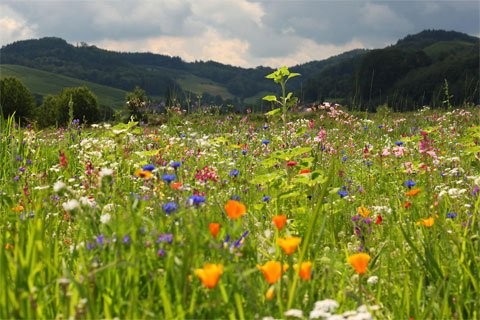 Những vạt hoa dại đầy màu sắc mọc ven đường.