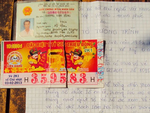 Như Báo Điện tử Dân Việt, Báo NTNN đã đưa tin, Hội đồng giám sát xổ số kiến thiết (XSKT) tỉnh Kiên Giang đã quyết định trả thưởng cho ông Dương Văn Tùng - chủ nhân tờ vé số trúng giải 100 triệu đồng bị rách đôi.