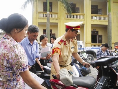 Thượng sỹ Bùi Tiến Vinh, đội CSGT Phúc Thọ, gạt mồ hôi đáp: “Các chị cố đợi, phải làm theo thứ tự”. Vài cụ già đứng ở góc sân cứ tủm tỉm cười tỏ ý phấn khởi, rồi nói thầm: “Không thể tin nổi”. Anh Dương Văn Định đi đăng ký lại xe cho vợ, nói rổn rảng: “Lên huyện ít nhất mất 1 ngày; có khi phải đi lại mấy lần. Làm ở xã, thiếu giấy tờ gì, chủ tịch, trưởng công an xã xác nhận luôn”.
