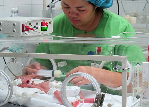Trung tâm chăm sóc & điều trị sơ sinh của bệnh viện Phụ sản TW hiện nay luôn có khoảng hơn 100 trẻ sinh non, nhẹ cân đang điều trị, chăm sóc. Thậm chí có giai đoạn cao điểm phải 2 cháu chung một giường. Bé sinh non nhẹ cân nhất hiện đang chăm sóc tại đây là 600 gram, 24 tuần tuổi.