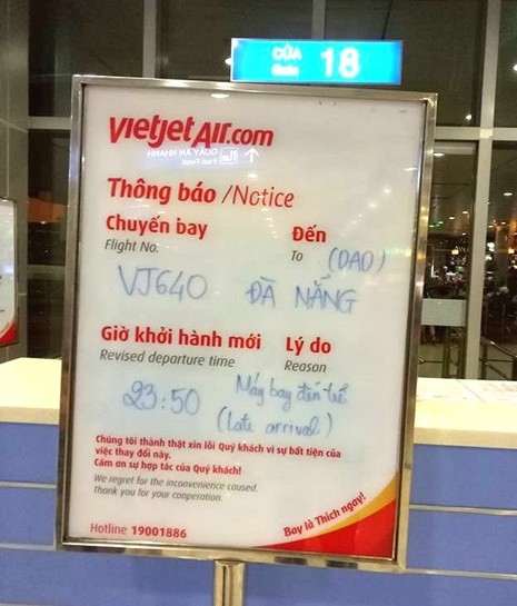 Thông báo lùi giờ bay của Vietjet Air được anh Toàn chụp lại.